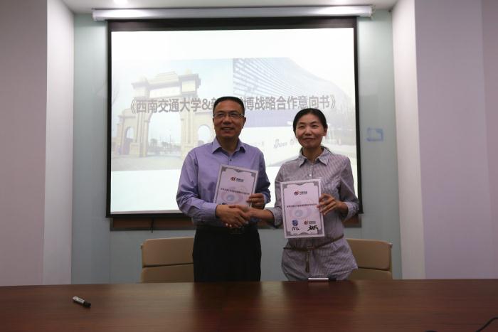 徐飞校长对新浪微博一直以来对学校新媒体建设、人才培养和学校120周年校庆工作中给予的大力支持表示感谢,并介绍了交大的历史底蕴、学科优势、高层次人才、校园文化氛围等,特别介绍了学校在轨道交通领域的发展和正在推进的三大战略。在座谈交流中,徐飞校长从科技成果混合所有制改革西南交大“小岗村”试验的媒体话题设置、联合举办中国高铁走出去战略高峰论坛、9.28孔子诞辰与4.23世界读书日的经典阅读推广普及、联合发布交大指数(中国大众创业指数MEI、大学国际化水平排名URI、大中城市退休生活质量指数)、共同推进数据科学学科建设与大数据研究、创新创业人才培养等方面提出了合作构想,希望以战略合作意向书的签订为起点,与新浪公司展开全方位、全业态的深度合作。