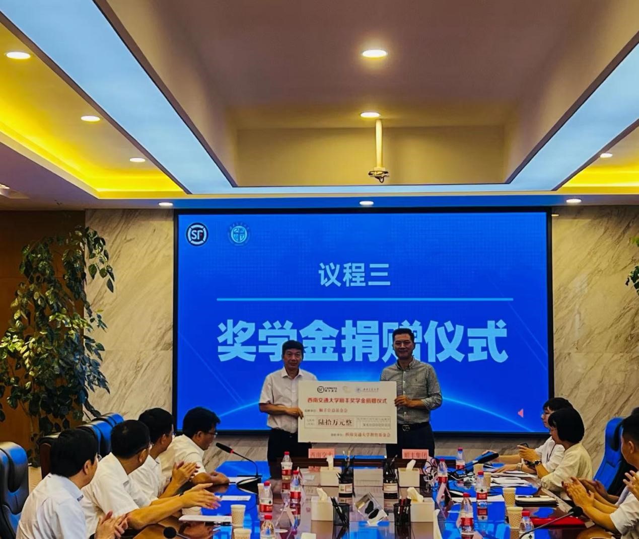 陈璐对学校一直以来给予顺丰集团企业发展的支持表示衷心感谢。她从回顾过去、珍惜现在和展望未来三个角度进行发言。回顾过去,顺丰集团秉持实干的工作作风建设企业,西南交大为顺丰集团输送了大量、高质量的优秀毕业生,这既是学校人才培养和学科建设的优异成果,也为双方奠定了良好的合作基础;珍惜现在,顺丰集团高度重视人才的吸引和培育,集团发展不断向好,发展领域也在不断拓展,期待合作进一步升华;展望未来,期待校企合作深入开展,进一步围绕人才培育、科技成果转化等方面深入探索,取得更多丰硕成果。