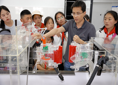 5月30日是全国科技者日,西南交大子弟小学举办了别开生面的科创节活动,活动以“科学筑梦 创享未来”为主题,旨在充分利用高校优质资源,为孩子们种下“科学梦”。阿坝县小学师生也饶有兴趣地积极加入其中,观摩了高温超导磁悬浮“莫比乌斯环”实验、桥梁模型承重比赛、桥梁模型造型比赛、人工 智能对抗赛和水上足球遥控收集赛比赛,并且在大学志愿者的指导下体验各种有趣的科学小活动,无论是“克拉尼图形”、“静电回旋加速器”,还是“激光小车”,都让同学们大呼神奇!