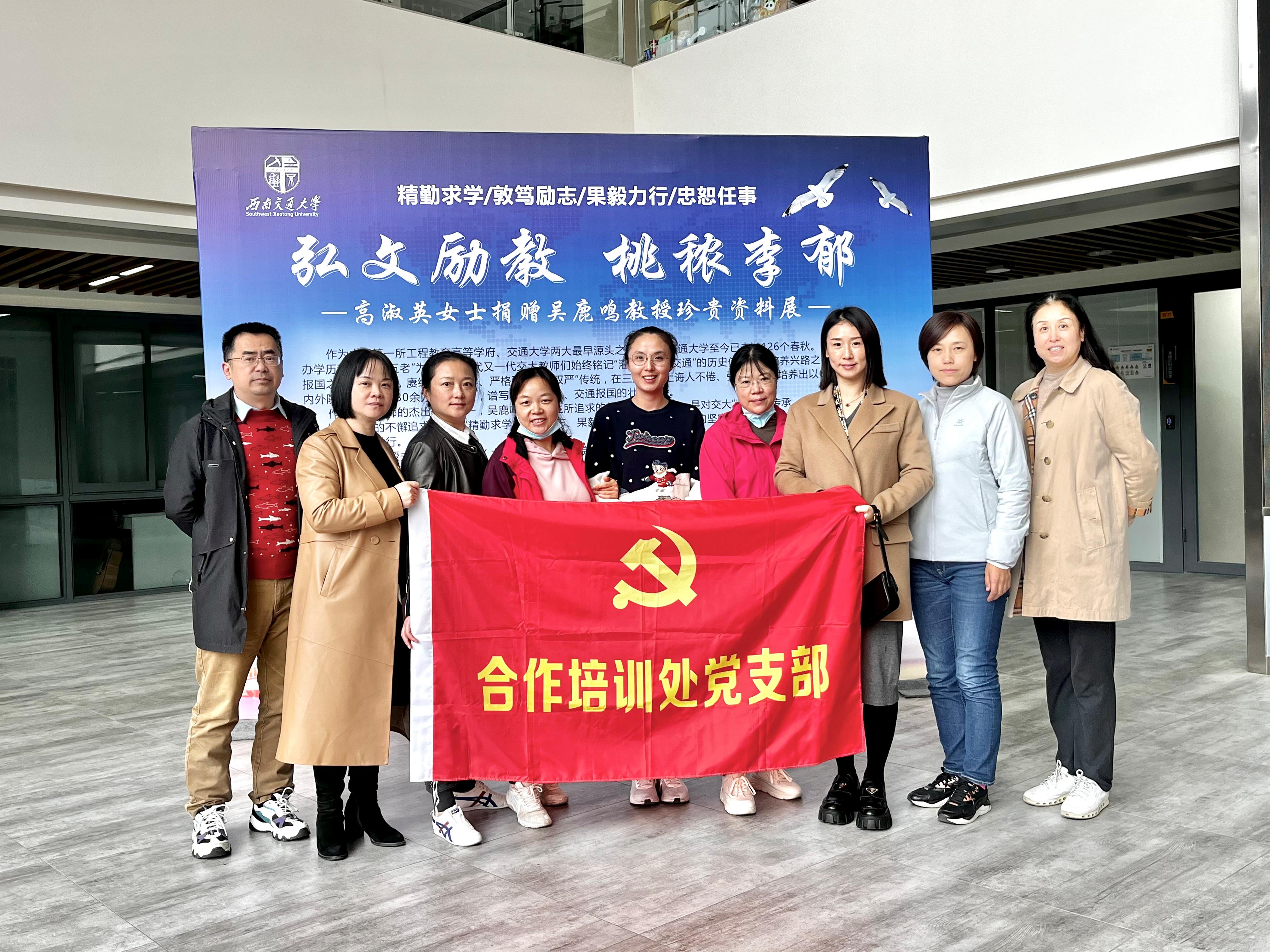 2022年11月17日下午在犀浦校区3号教学楼中庭,合培处党支部的党员们一起参观吴鹿鸣教授珍贵资料展。