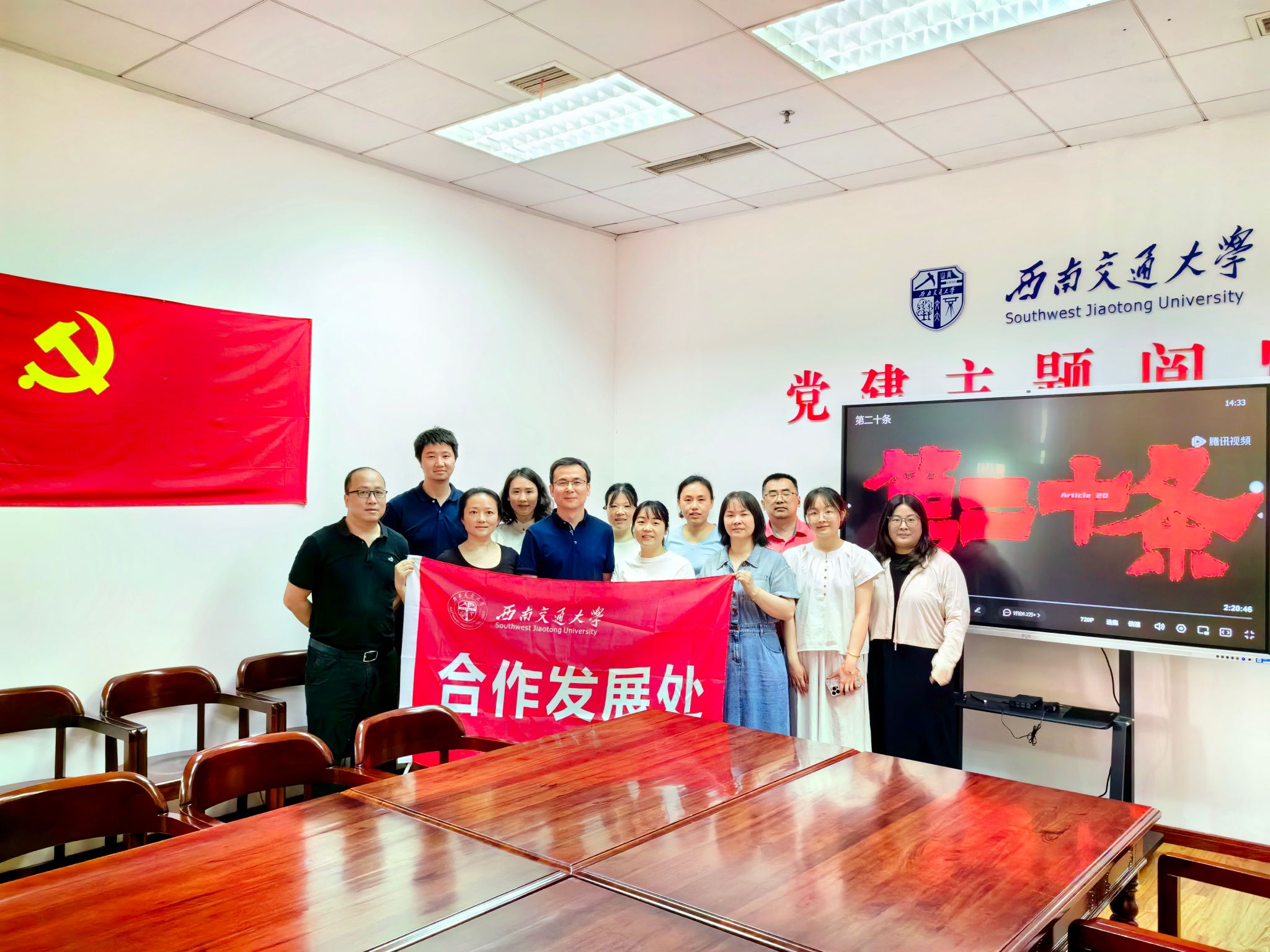 为深入学习贯彻习近平法治思想,大力弘扬社会主义法治精神,扎实开展党纪学习教育,2024年5月16日下午,合作发展处党支部在图书馆A308集体观看电影《第二十条》。